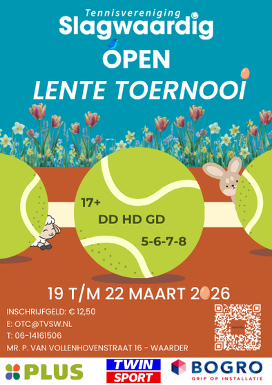Ben jij klaar om je sportieve energie kwijt te kunnen en het nieuwe tennisseizoen goed te starten? Doe dan mee aan het Slagwaardig Open Lente Toernooi van 19 t/m 22 maart 2026!